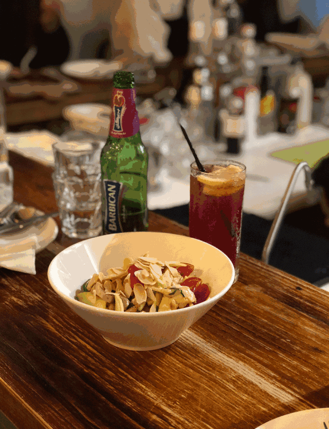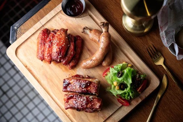 这家店不在繁华的中山北路主干道上,需要拐个弯仔细寻觅才能找到。店面不大,一推门就能看见长长的吧台。老板每天都会搭配一组4款酒作为当日限定,这对选择困难症来说绝对是天大的好事。小吃也毫不逊色,烤肉拼盘、酸奶油红豆肉酱玉米脆片、薄底披萨、黄桃香煎鸡胸肉沙拉等,让人不得不感叹:这里可能是全杭州最会做吃的的酒吧了。这里还有另一个空间叫「局」,具体介绍可重温之前推文哦。(链接:这家老巷子里的深夜银行,自带武侠气质,只存酒钱!)