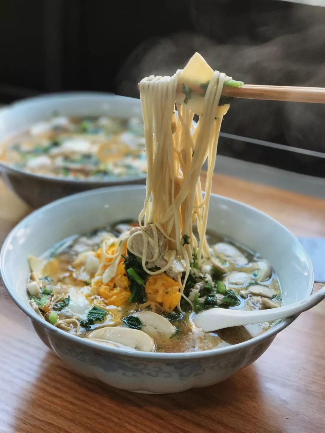 在杭州生活的,几乎无人不知菊英面馆。这家上过《舌尖》的平民面馆每天一到饭店总是非常多人在排队,甚至有游客远道而来就只为了品尝那一碗片儿川,据说每天都能卖出500碗以上的面。面略带筋道,面汤鲜而不腻,浇头是蘑菇油渣笋片,都是现点现炒,保证新鲜。加入一个荷包蛋,满满的都是杭州人小时候的记忆。