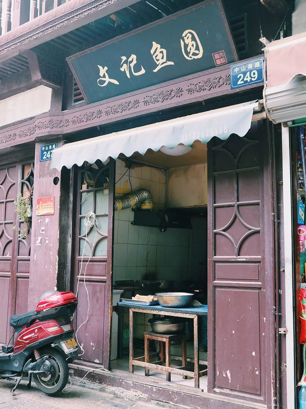 经过文记鱼圆店的时候,完全是被香味吸引过去的。临街的小店只有五平米左右大,路过的时候飘来阵阵素烧鹅和卷鸡的香气,让我等吃货完全挪不开脚步。这家店已经有20年的历史,但在这个机械化的年代老板依然坚持手工做鱼圆。店里卖两种不同的鱼圆,包头鱼做的2元一颗,草鱼做的是3元一颗,加入原汤一起放入锅内煮8分钟左右,加点葱花,入口是弹性十足的口感,鲜而不腥。
